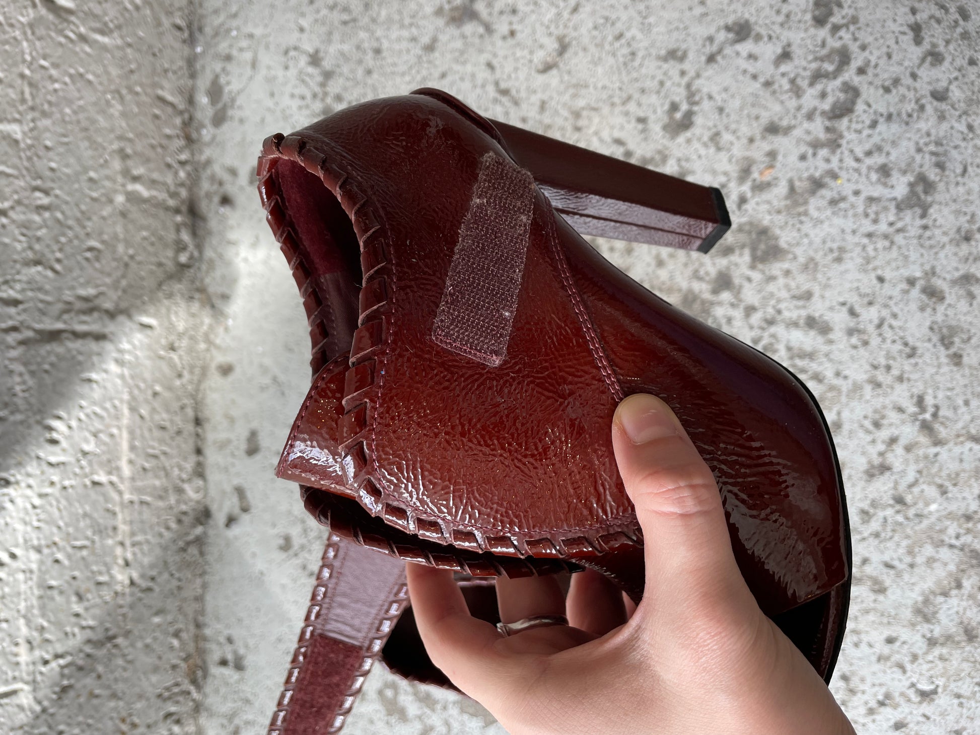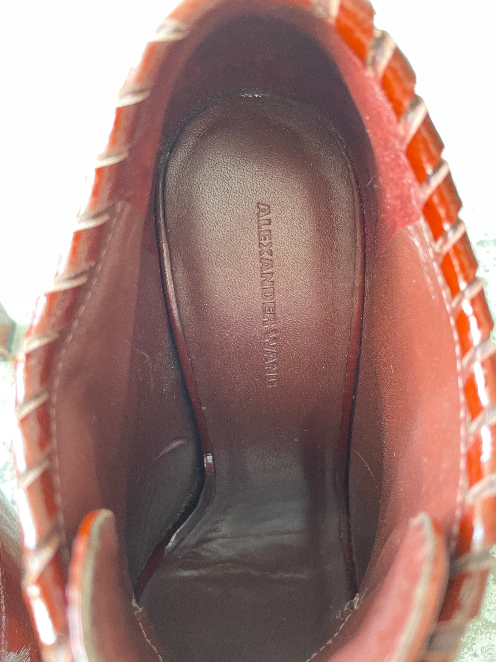 Alexander Wang patent rust coloured heel. Size 38. Peep toe style. Velcro strap across the ankle. Original style called the Cecilia Ankle Boot.