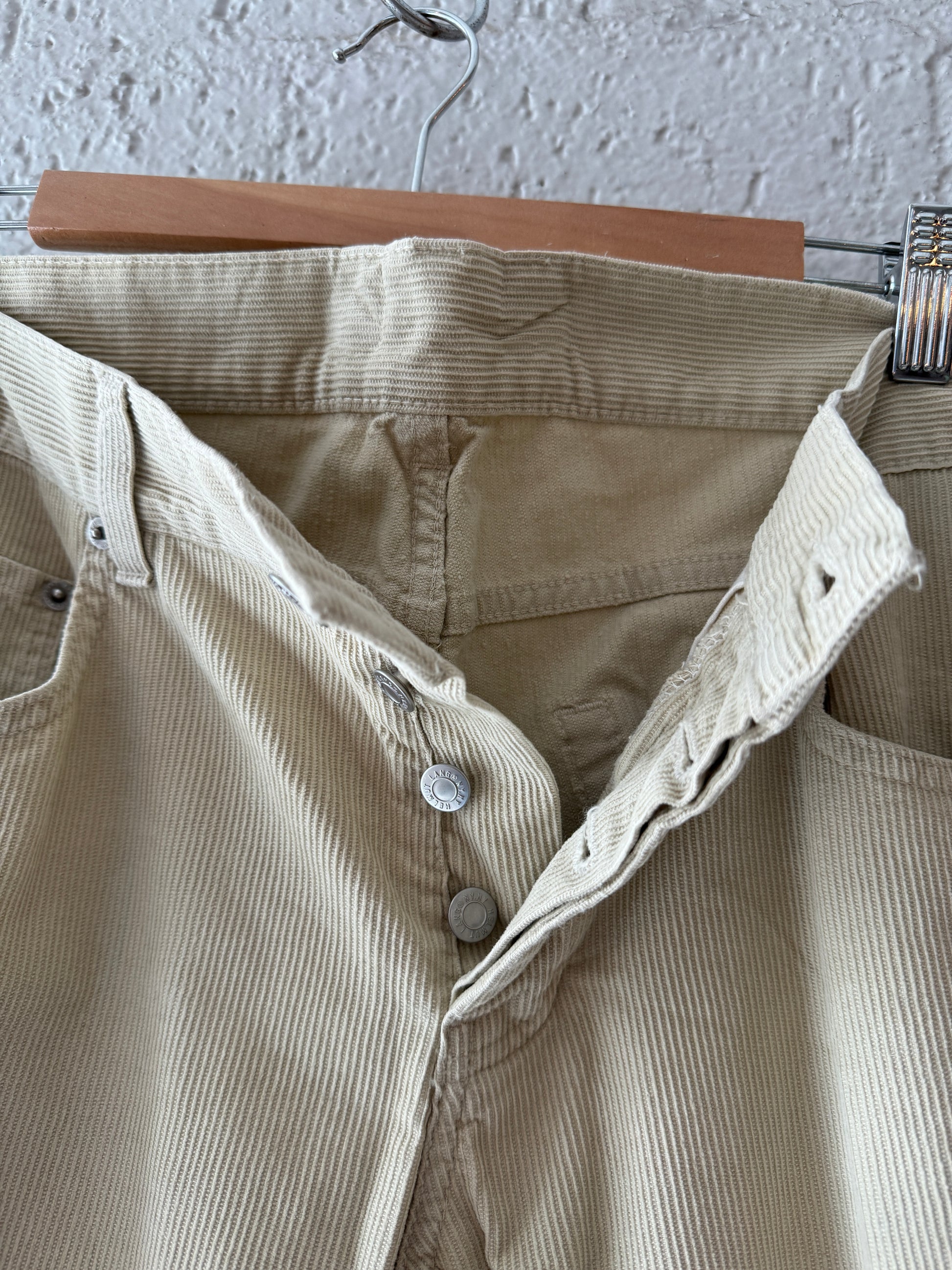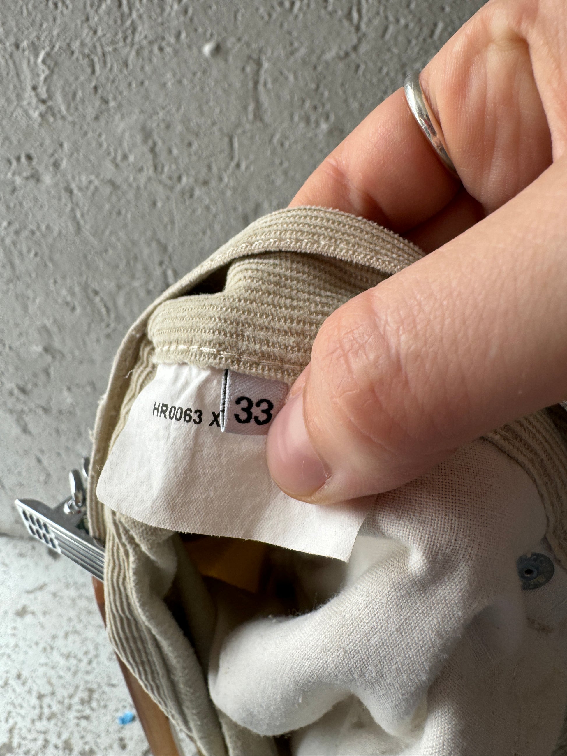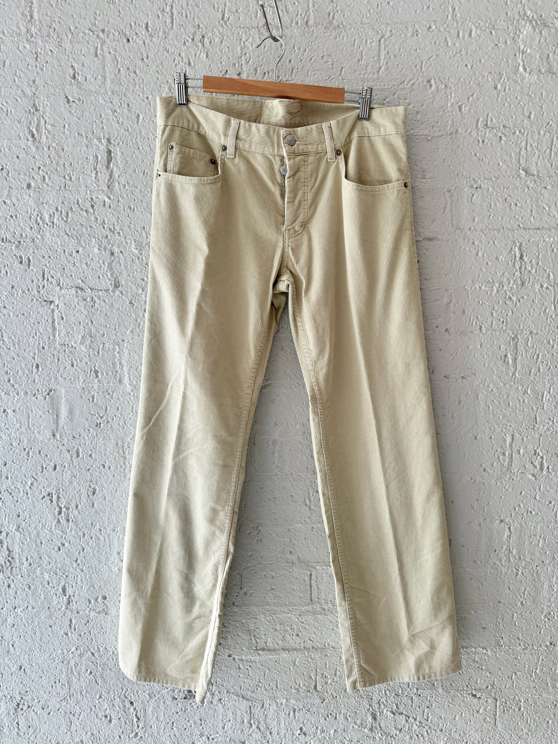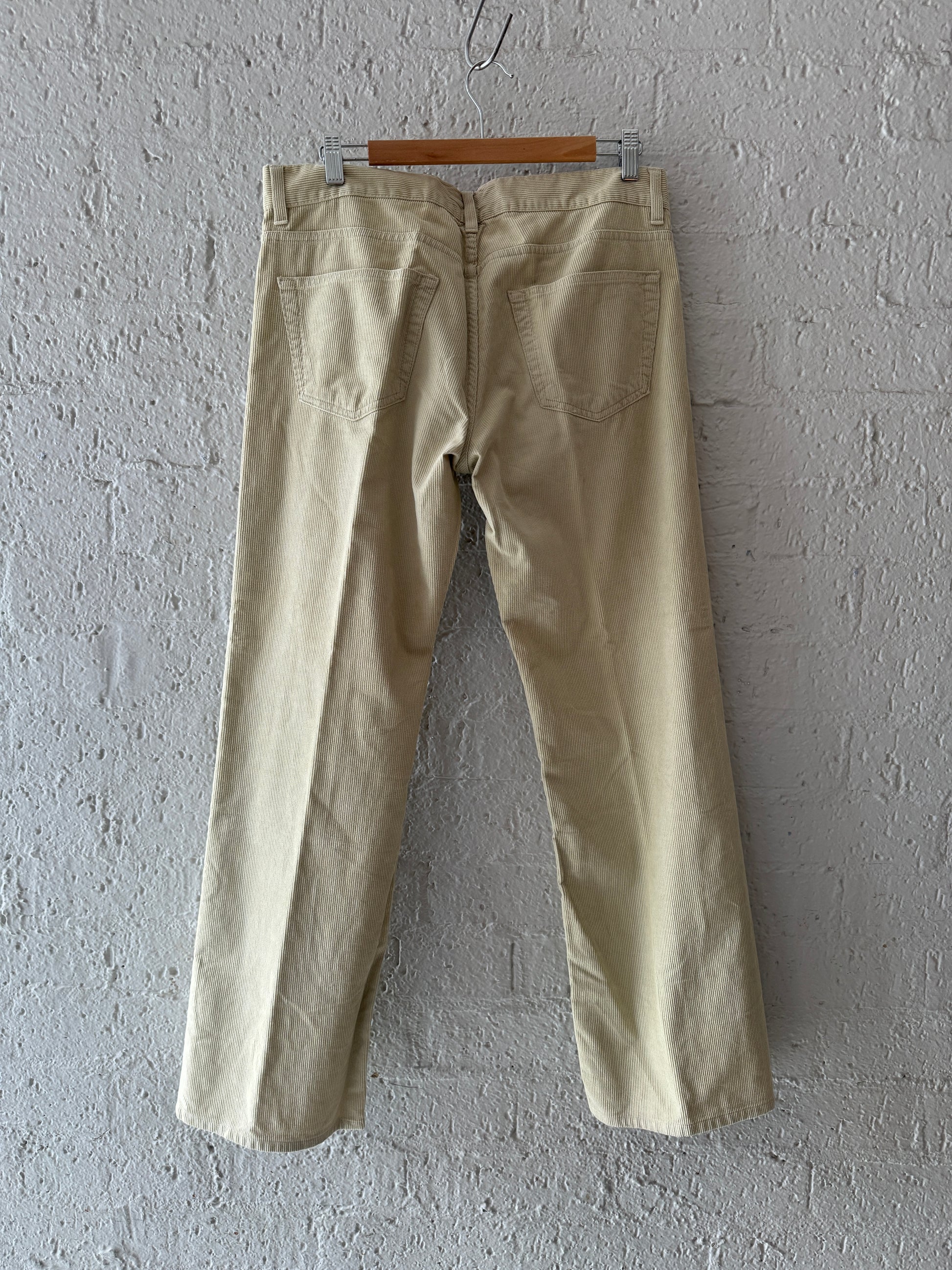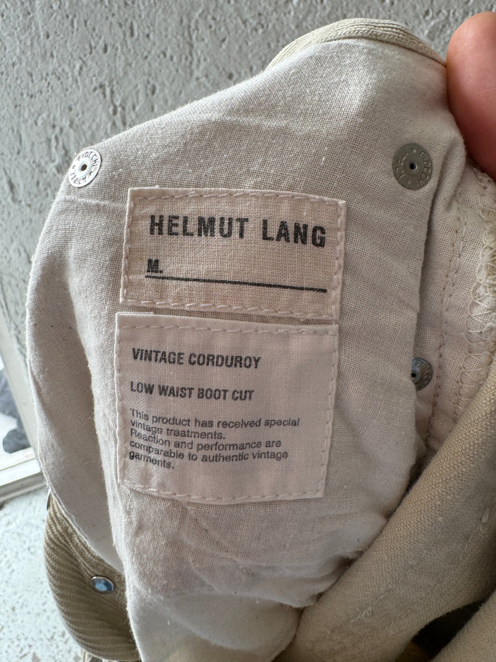 Helmut Lang beige/cream coloured corduroy pants in a size 33. Button through fly. Low waist boot cut style.