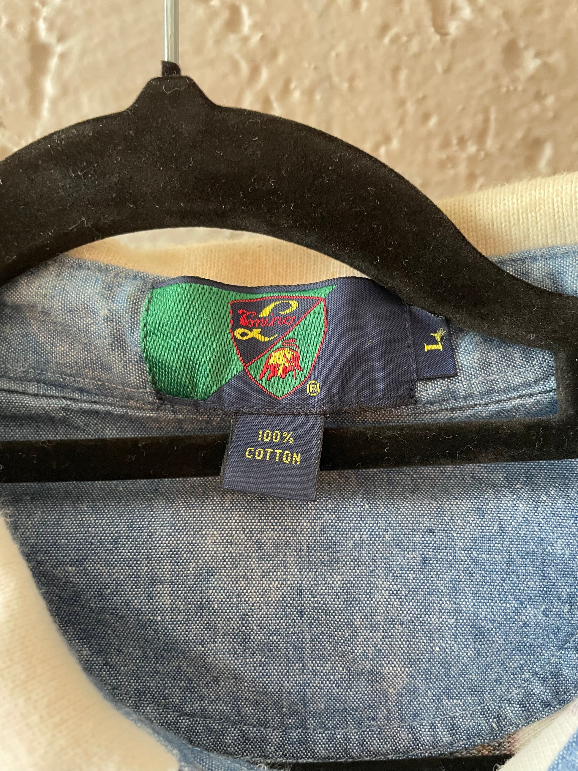 Vintage long sleeve polo shirt. 100% cotton. Size L.